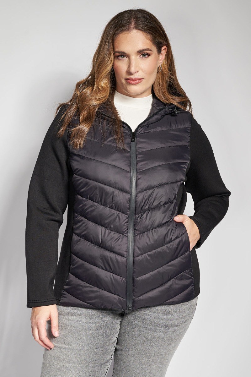 - Ένα ευέλικτο μπουφάν, ιδανικό για layering και για τις μεταβατικές εποχές. Διαθέτει καπιτονέ κορμό που εξασφαλίζει ζεστασιά και μοντέρνα εμφάνιση, ενώ τα μακριά μανίκια και τα πλαϊνά πάνελ είναι από μαλακό ελαστικό ύφασμα, προσφέροντας άνεση, ευκολία στην κίνηση και μία ενιαία υφή στο πλαϊνό μέρος. Η ενσωματωμένη κουκούλα του είναι πρακτική, και το κλείσιμο με φερμουάρ κάνει εύκολη τη χρήση του. Η μείξη υφασμάτων δημιουργεί ένα ενδιαφέρον casual-chic αποτέλεσμα. Για ένα casual chic look γραφείου, συνδυάστε το μπουφάν με ένα ψηλόμεσο παντελόνι σε ίσια γραμμή από μαλλί ή κρεπ ύφασμα και ένα κομψό ζιβάγκο ή πουκάμισο με διακριτικό σχέδιο. Ολοκληρώστε το look με δερμάτινα loafers ή μποτάκια αστραγάλου με χοντρό τακούνι, και μια δομημένη τσάντα χειρός για να διατηρήσετε ένα επαγγελματικό ύφος. Για ένα πιο casual ύφος, συνδυάστε το μπουφάν με ένα τζιν παντελόνι σε χαλαρή γραμμή ή ένα αθλητικό κολάν και ένα φούτερ με κουκούλα ή ένα μακρύ T-shirt. Ολοκληρώστε το look με άνετα sneakers, μία backpack ή μία τσάντα χιαστί και ένα πλεκτό σκουφάκι για ένα ολοκληρωμένο, δυναμικό και άνετο σύνολο. Το μοντέλο έχει ύψος 180 εκ στήθος 107 μέση 95 περιφέρεια 122 και φοράει το μέγεθος Μ