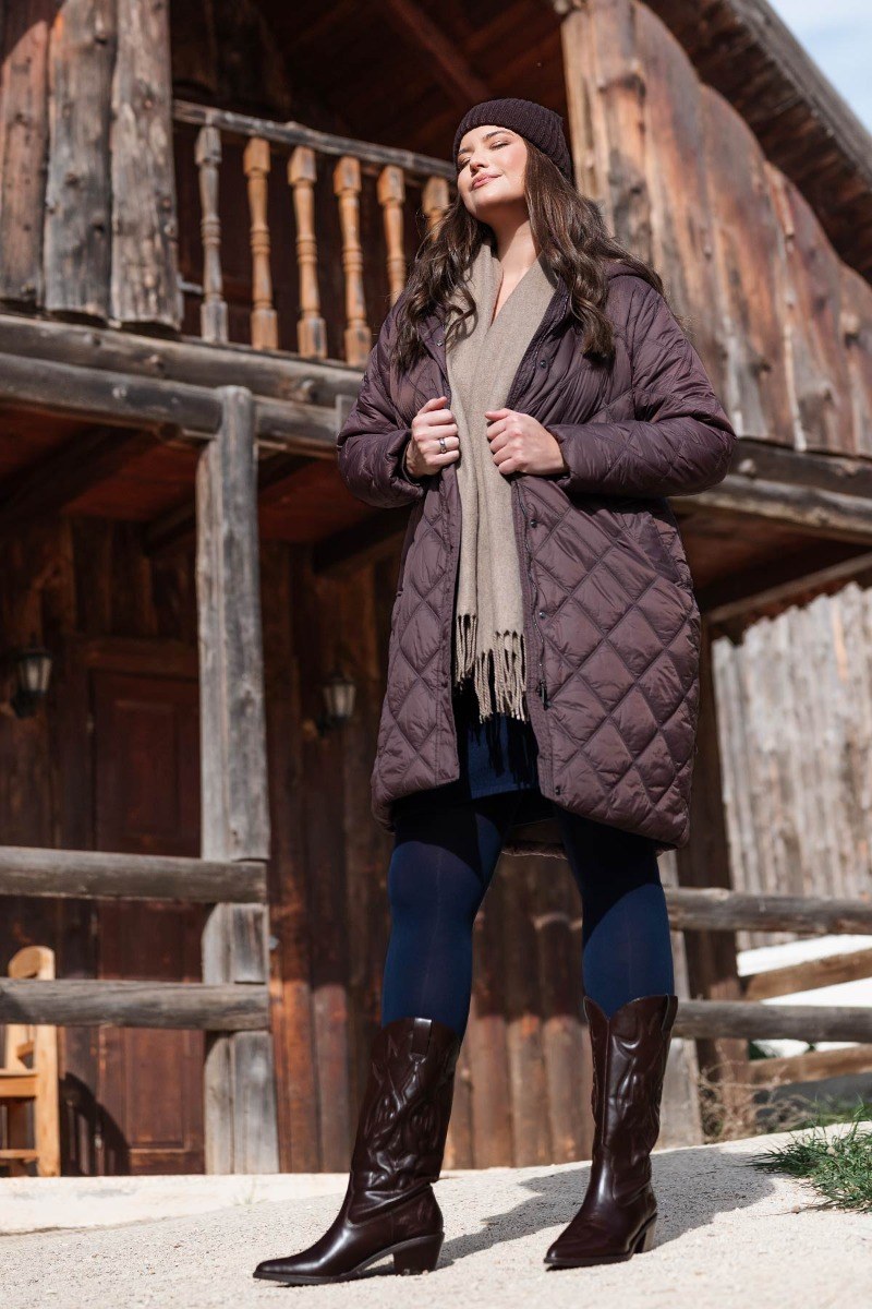 - Μακρύ καπιτονέ μπουφάν, το απαραίτητο κομμάτι για τις κρύες μέρες του χειμώνα. Διαθέτει μια μοντέρνα διαμαντέ ραφή που προσθέτει υφή και χαρακτήρα, ενώ η γραμμή του είναι ίσια και άνετη, εξασφαλίζοντας άψογη εφαρμογή και ευκολία στις κινήσεις. Διαθέτει πρακτική αποσπώμενη κουκούλα, κλείσιμο με φερμουάρ και πατιλέτα με κρυφά κουμπιά, καθώς και πλαϊνές τσέπες για τα χέρια. Πρόκειται για ένα ευέλικτο πανωφόρι που προσφέρει ζεστασιά χωρίς να προσθέτει όγκο. Για μία εμφάνιση από το πρωί έως το απόγευμα, συνδυάστε το με ένα ζεστό πλεκτό σύνολο και αθλητικά παπούτσια, ενώ για πιο casual εμφανίσεις, φορέστε το πάνω από ένα τζιν παντελόνι και ένα χοντρό πουλόβερ με μποτάκια τύπου Chelsea. Το μοντέλο έχει ύψος 180 εκ στήθος 107 μέση 95 περιφέρεια 122 και φοράει το μέγεθος Μ