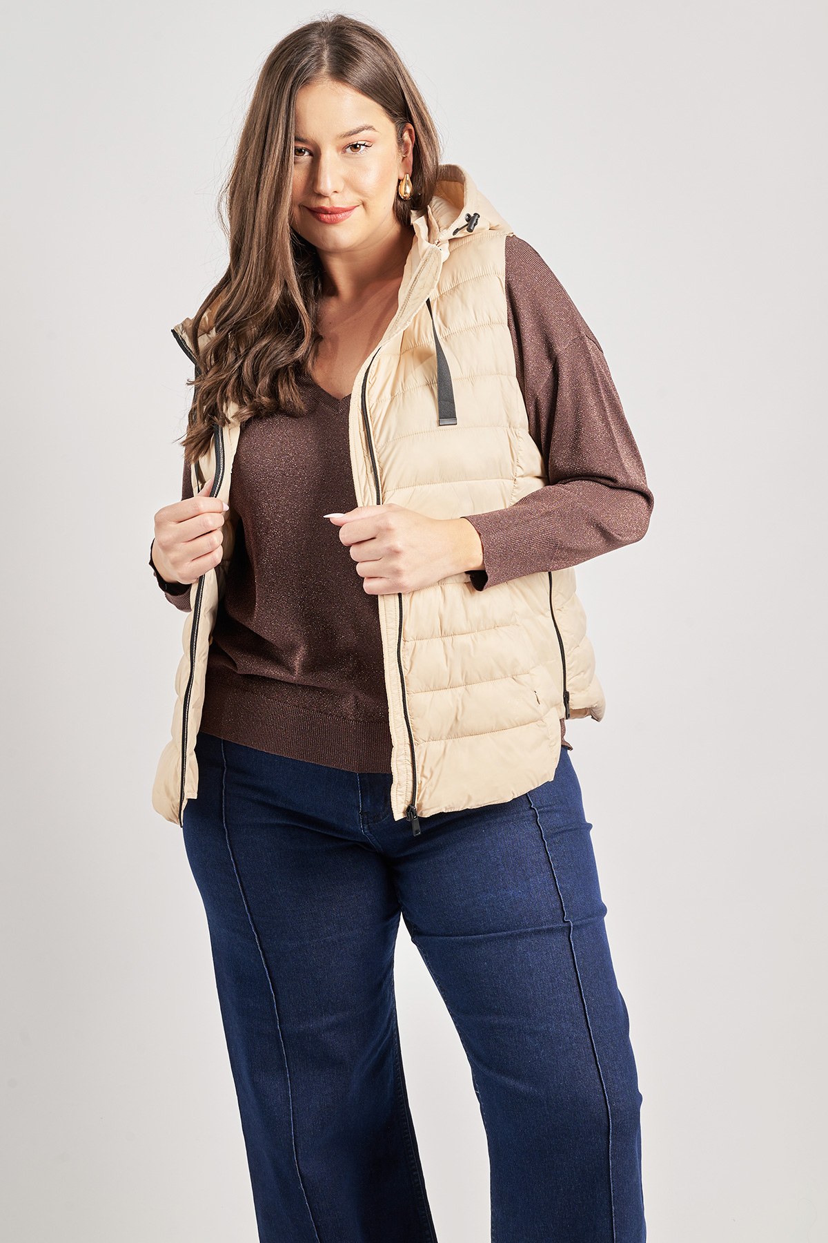 - Καπιτονέ κοντό αμάνικο μπουφάν. Άνοιγμα εμπρός με φερμουάρ. Εσωτερικές τσέπες στο πλάι. Διαθέτει αποσπώμενη κουκούλα και ανοίγματα με φερμουάρ κάτω στο πλάι. Πρακτικό και ελαφρύ. Το μοντέλο που φοράει το μαύρο jacket έχει ύψος 172 εκ, στήθος 108, μέση 94, περιφέρεια 111 και φοράει το μέγεθος S. Το μοντέλο που φοράει το μπεζ και το μπορντώ jacket έχει ύψος 180 εκ, στήθος 114, μέση 88, περιφέρεια 121 και φοράει το μέγεθος S
