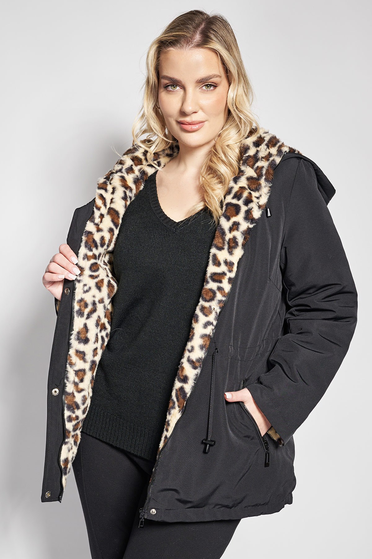 Μπουφάν τύπου παρκά με εσωτερική λεοπάρ γούνα