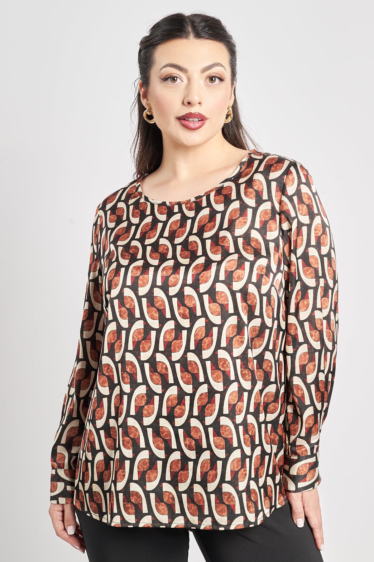 Μπλούζα σατινέ σε γεωμετρικό μοτίβο