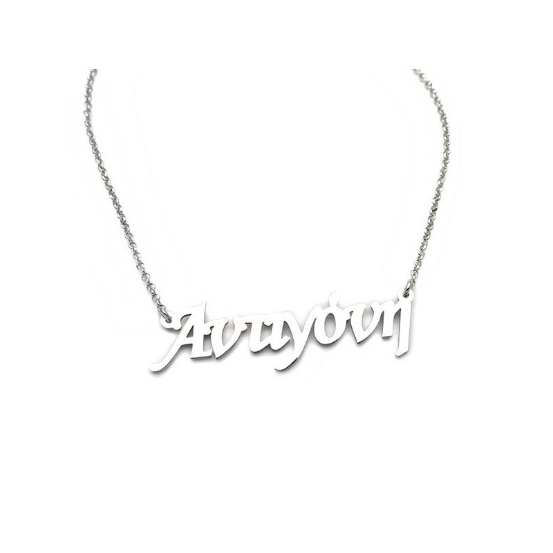 - Κολιέ με όνομα Αντιγόνη, από Ασήμι 925 επιπλατινωμένο και αλυσίδα. Το εργαστήριο Asimenio, διαθέτει ποικιλία σε κολιέ με ονόματα. **Το προϊόν αυτό αποτελεί custom παραγγελία και η πληρωμή του γίνεται με κάρτα ή τραπεζική κατάθεση (όχι αντικαταβολή).Σε εμάς θα βρείτε: κολιέ με ονόματα, κολιέ Μαμά, κολιέ mommy, κολιέ με ανδρικά ονόματα, καθώς επίσης και βραχιόλια με ονόματα. Δείτε όλη τη συλλογή εδώ >> Κολιέ με ονόματα