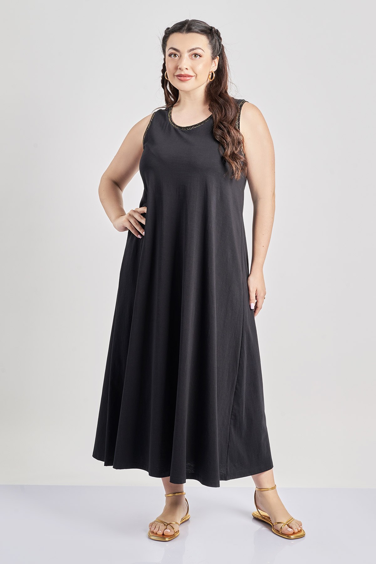 Φόρεμα αμάνικο βαμβακερό με τρέσα lurex