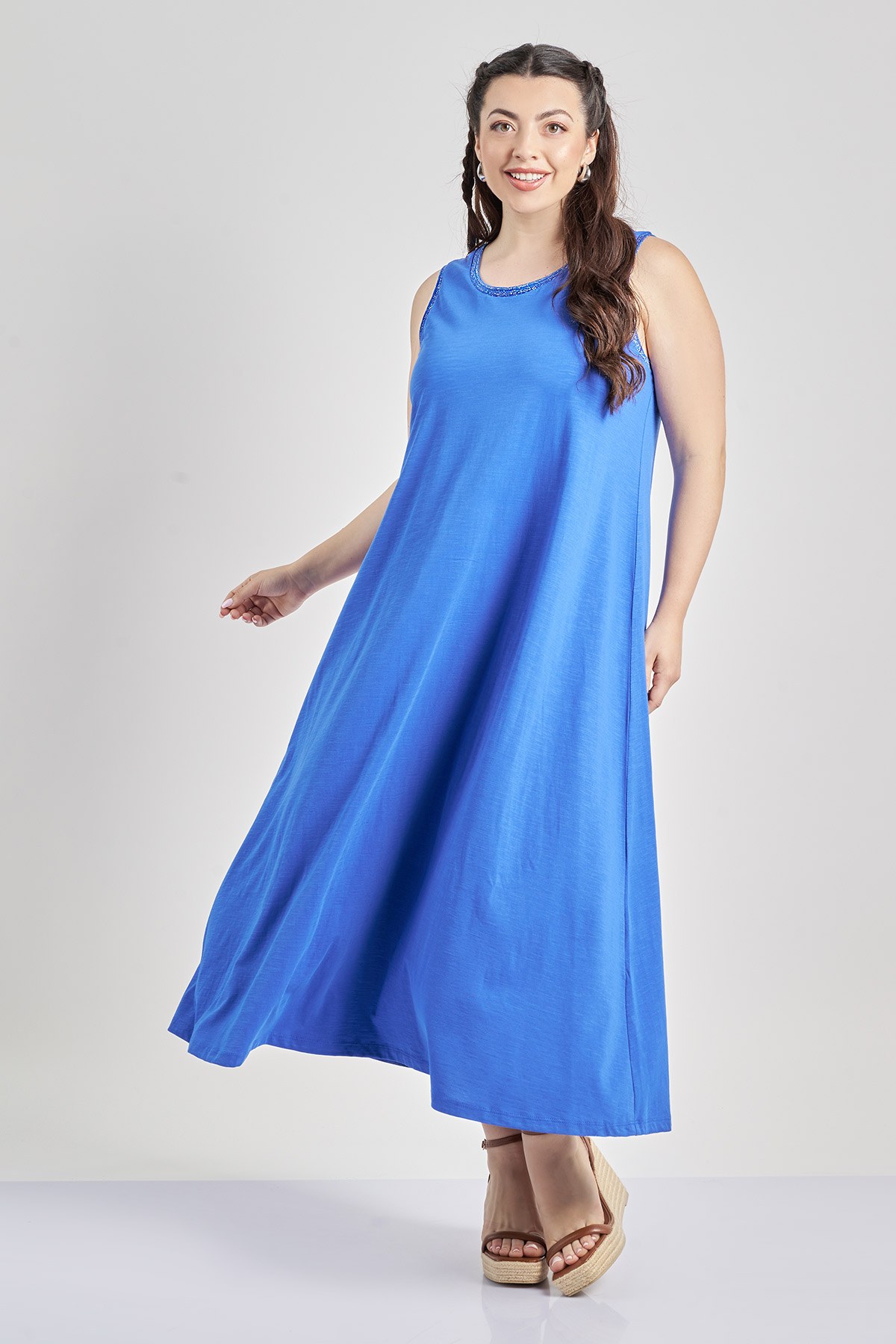 Φόρεμα αμάνικο βαμβακερό με τρέσα lurex