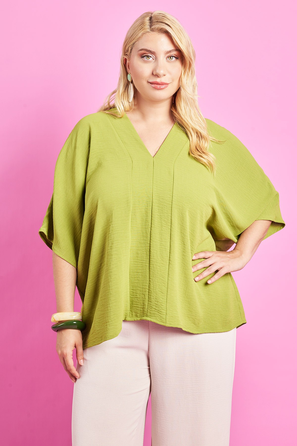 - Μπλούζα από ανάλαφρη κι ανάγλυφη ύφανση washed. V λαιμόκοψη. Κεντρικές ραφές μπροστά και πίσω. Άνετα κοντά μανίκια τύπου νυχτερίδα. V άνοιγμα στην πλάτη με δέσιμο. Σε άνετη γραμμή. Το μοντέλο έχει ύψος 177εκ, στήθος 110, μέση 85, περιφέρεια 115 και φοράει μέγεθος S