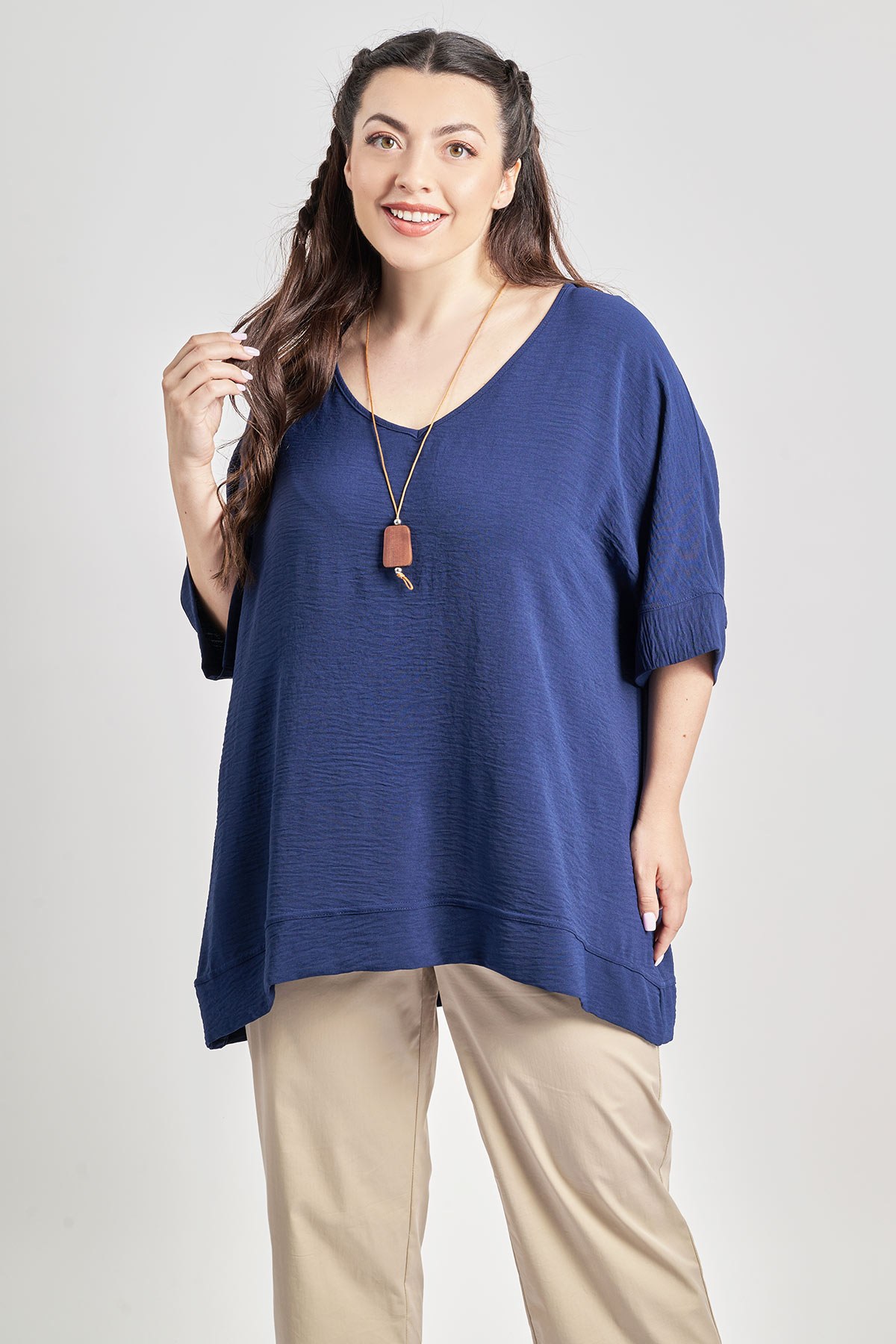 - Μπλούζα από ανάλαφρο ύφασμα washed με ανάγλυφη υφή. V λαιμόκοψη. Κοντά άνετα μανίκια. Χαλαρή εφαρμογή. Διατίθεται μαζί με κολιέ που δύναται να διαφέρει από αυτό της φωτογραφίας. Συμπληρώστε το σετ με κάτω μέρη της ίδιας ποιότητας washed όπως τα είδη 012510205585, 012410205584, 012510205583. Το μοντέλο έχει ύψος 172 εκ, στήθος 108, μέση 94, περιφέρεια 111 και φοράει το μέγεθος S