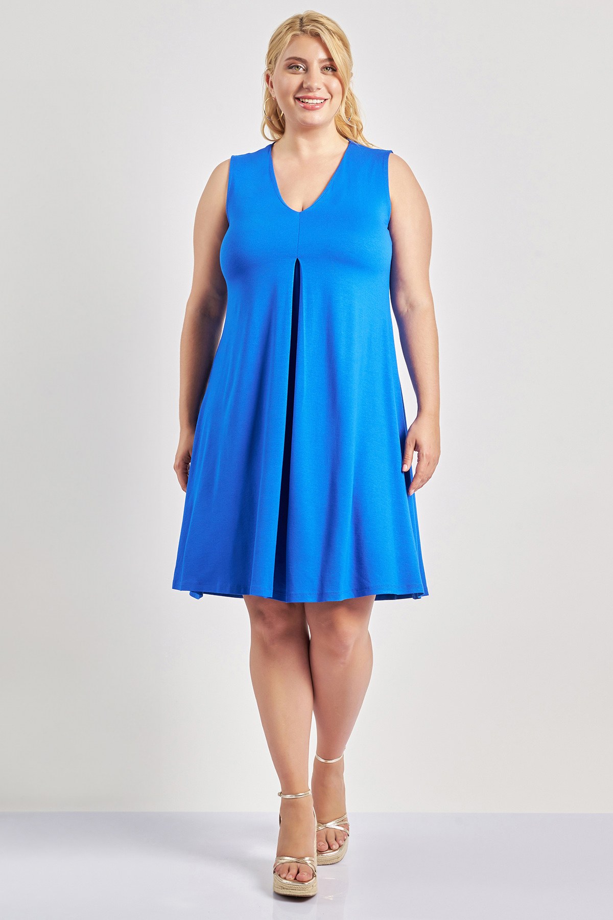 Αμάνικο φόρεμα ζέρσεϊ βισκόζη με πιέτα