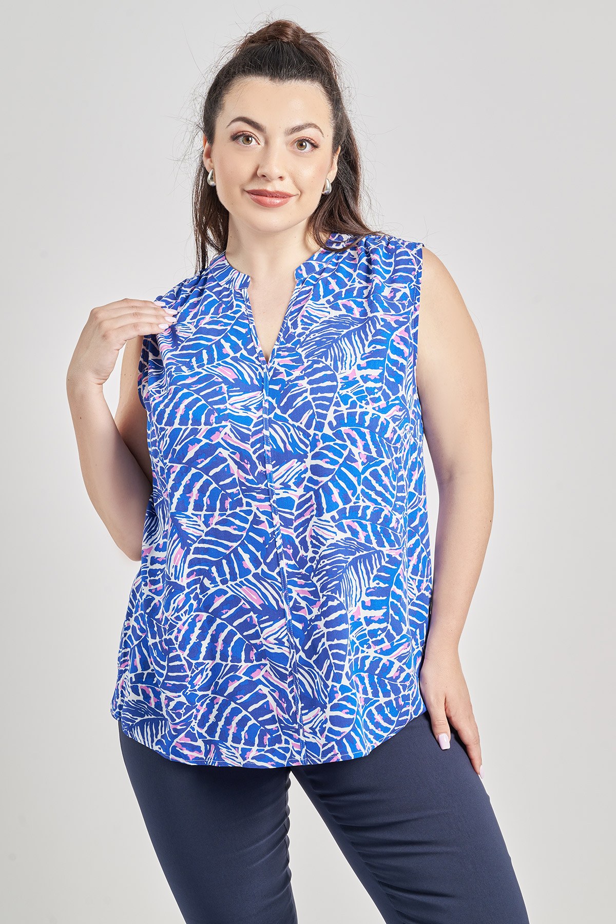 Μπλούζα βισκόζη αμάνικη εμπριμέ botanical