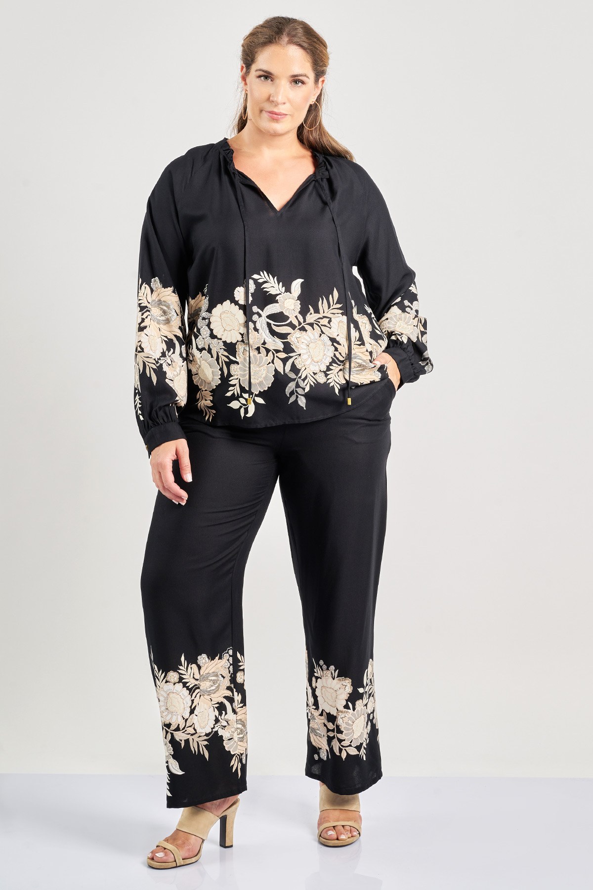 Παντελόνα βισκόζη με φλοράλ μπορντούρα