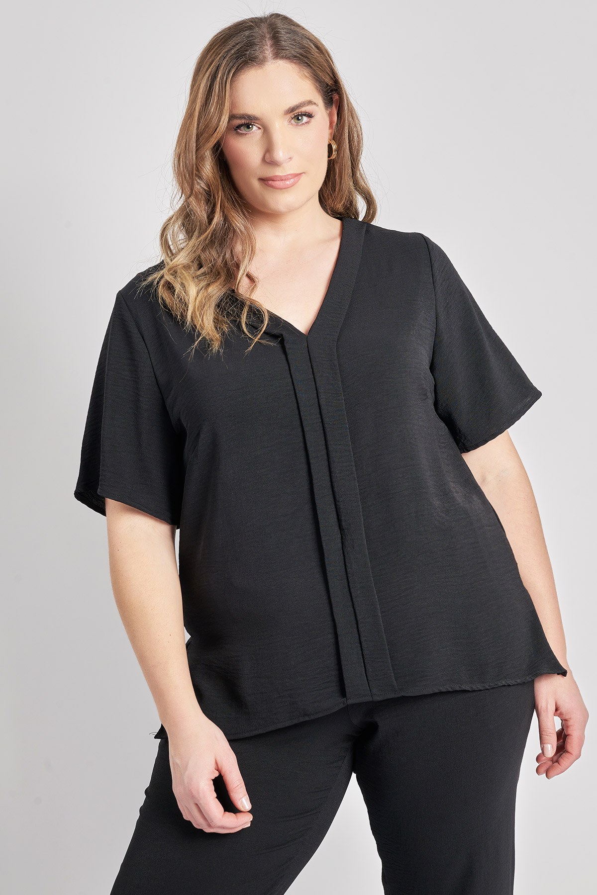 Μπλούζα washed με V και πιέτα μπροστά