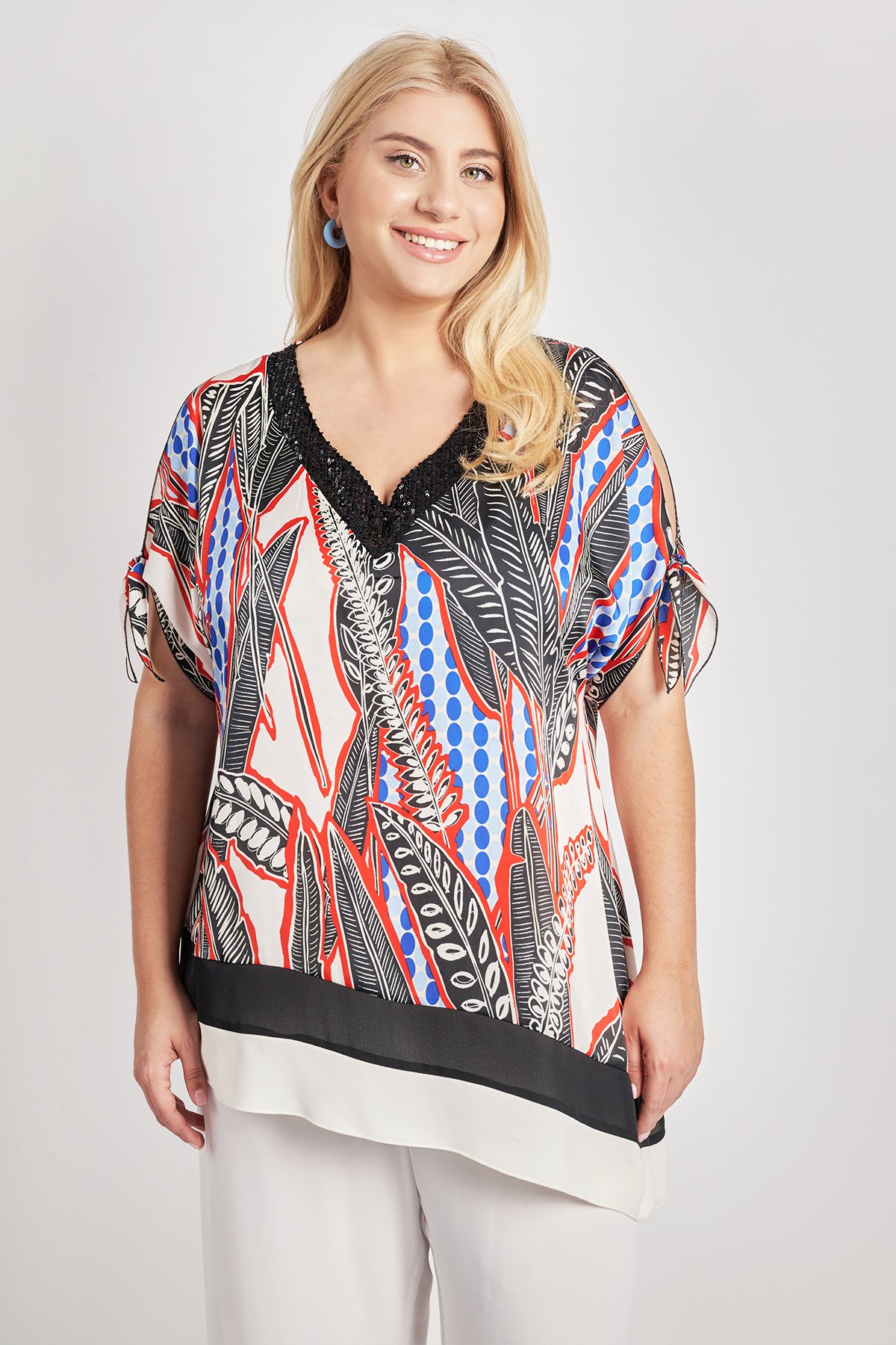 Βραδινή μπλούζα σατέν εμπριμέ ασύμμετρη