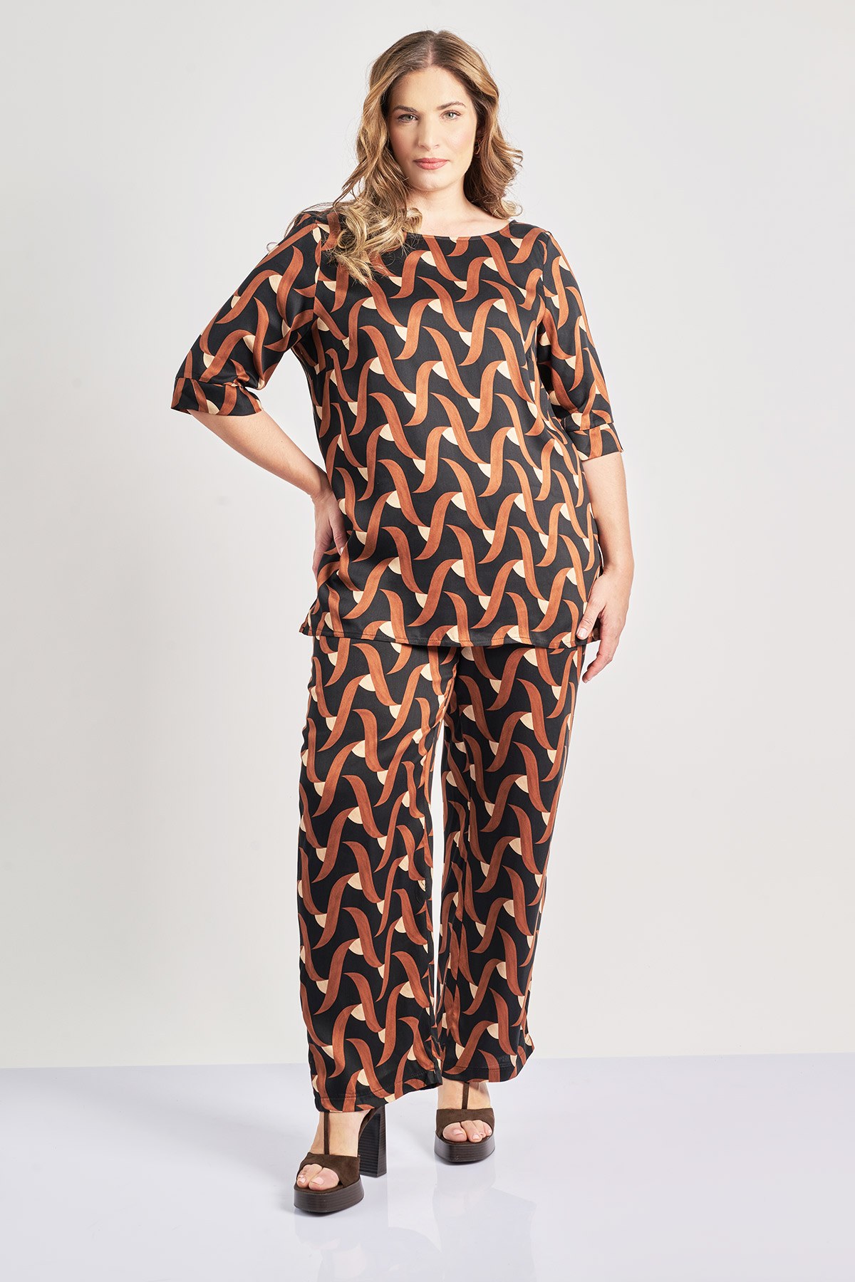 Παντελόνα σατινέ βισκόζη σε εμπριμέ γεωμετρικό