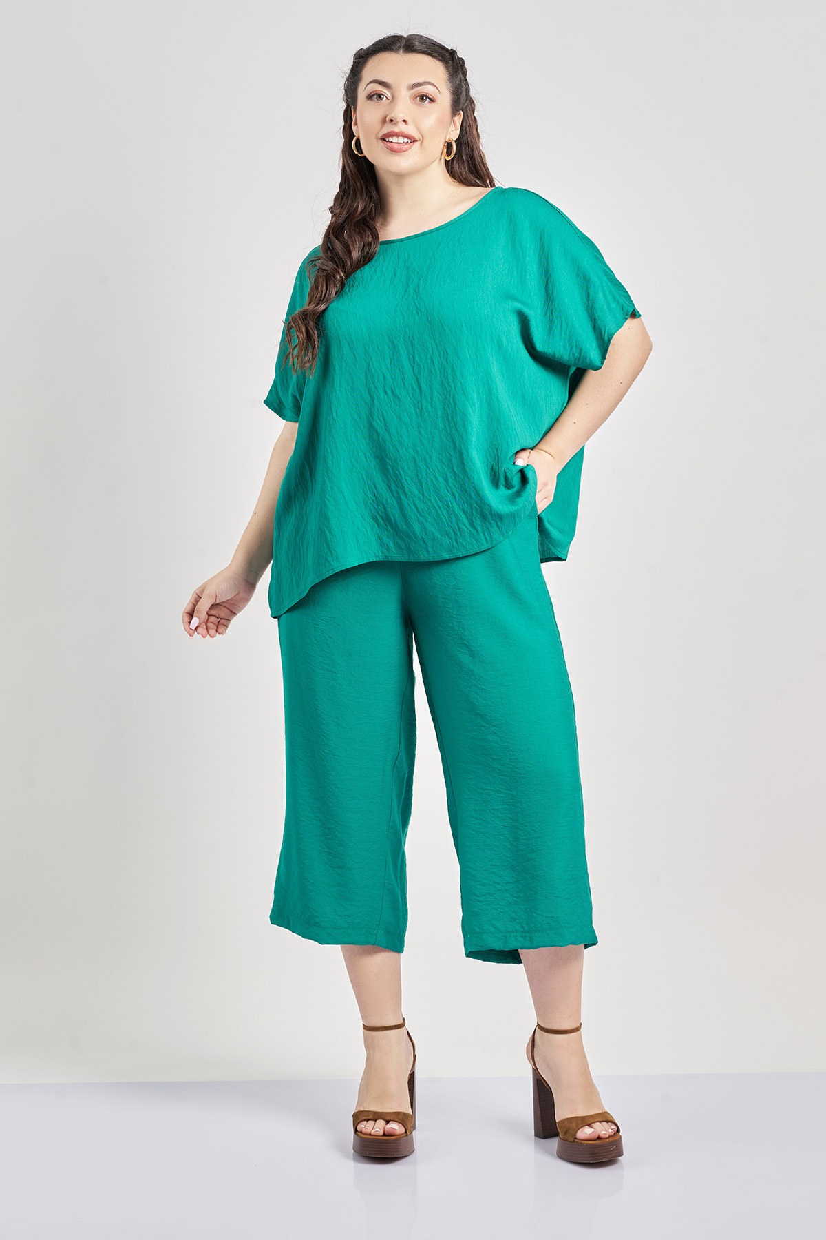 - Cropped παντελόνα από σύμμεικτο ρεγιόν σε όψη λινού. Λάστιχο στη μέση. Πλαϊνές λειτουργικές τσέπες που δε διαγράφουν. Το απόλυτο κομμάτι για δροσερές κι άνετες εμφανίσεις. Συμπληρώστε το σετ με τη μπλούζα με κωδικό 012510105636. Το μοντέλο έχει ύψος 172 εκ, στήθος 108, μέση 94, περιφέρεια 111 και φοράει το μέγεθος S