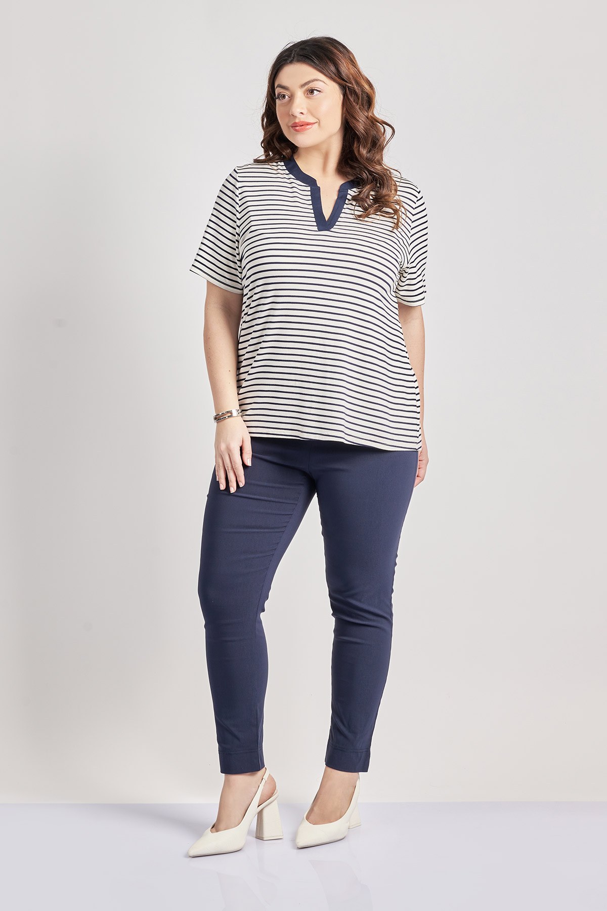 - Παντελόνι 7/8 από ελαστικό ύφασμα σύμμικτης βισκόζης τύπου bengaline. Διαθέτει λάστιχο στη μέση για άψογη εφαρμογή. Το μοντέλο έχει ύψος 172 εκ, στήθος 108, μέση 94, περιφέρεια 111 και φοράει το μέγεθος S