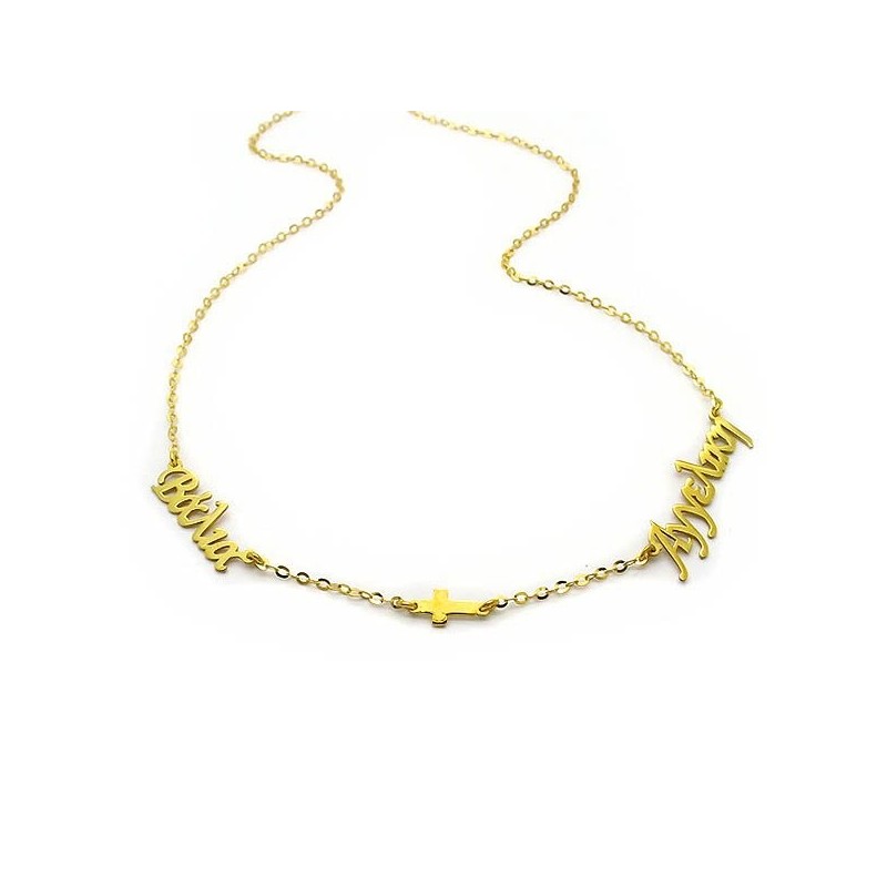 Κολιε με διπλά ονόματα και σταυρό, από Ασήμι επίχρυσο
