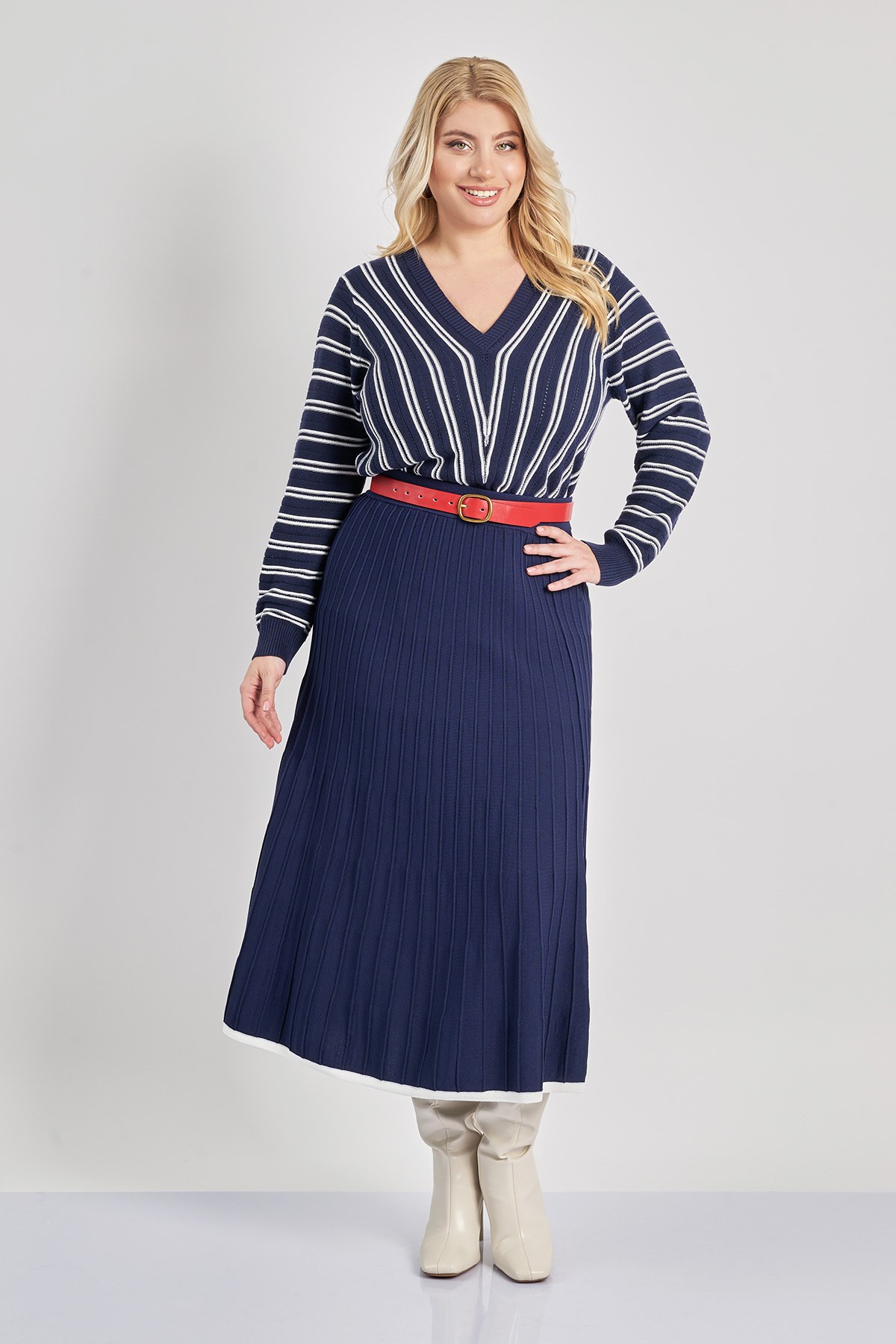 - Πλεκτή φούστα από σύμμεικτο ρεγιόν. Μάξι μήκος. Πλισέ σχέδιο με φάσα σε χρωματική αντίθεση στο τελείωμα. Ελαστική μέση για άψογη εφαρμογή. Η ζώνη αποτελεί στυλιστική πρόταση και δε διατίθεται μαζί με τη φούστα. Το μοντέλο έχει ύψος 177εκ, στήθος 110, μέση 85, περιφέρεια 115 και φοράει μέγεθος S