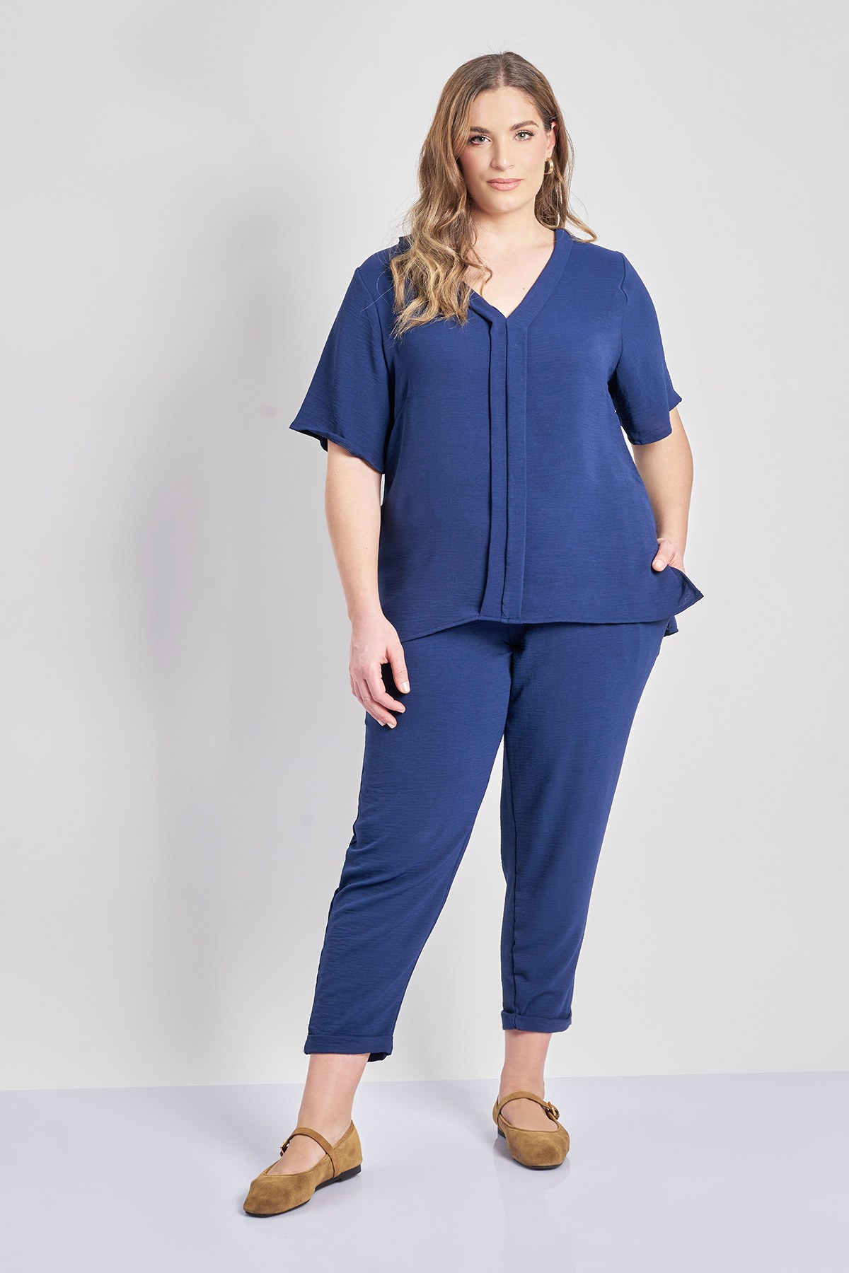 - Παντελόνι 7/8 σε ανάλαφρο ύφασμα washed με ανάγλυφη υφή. Ελαστική μέση με φάσα μπροστά. Με πλαϊνές τσέπες. Γραμμή tapered που στενεύει στο τελείωμα. Με ρεβέρ. Συμπληρώστε το σετ με τις μπλούζες ή τοπ από το ίδιο ύφασμα washed με κωδικούς 012510107669, 012510105575, 012510108475, 012510107675, 012510108186, 012510105574. Συνδυάζεται επίσης με το washed μπλέιζερ με κωδικό 012410705869. Το μοντέλο που φοράει τα χρώματα μαύρο και μπλε έχει ύψος 180 εκ, στήθος 107, μέση 95, περιφέρεια 122 και φοράει το μέγεθος S. Το μοντέλο που φοράει τα χρώματα εκρού και ίντιγκο έχει ύψος 177εκ, στήθος 110, μέση 85, περιφέρεια 115 και φοράει μέγεθος S.