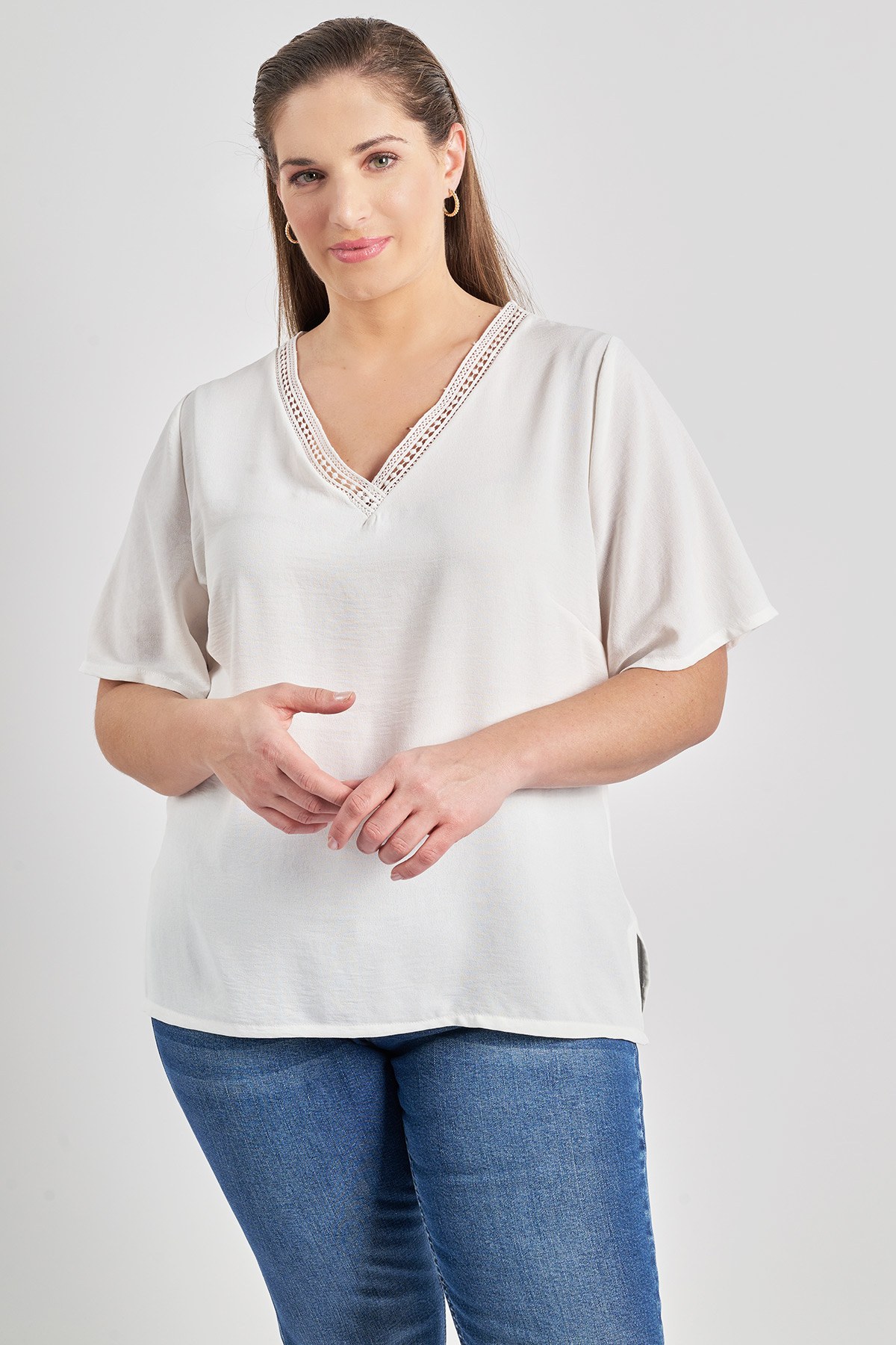 Μπλούζα washed ανάγλυφο με κροσέ στο V