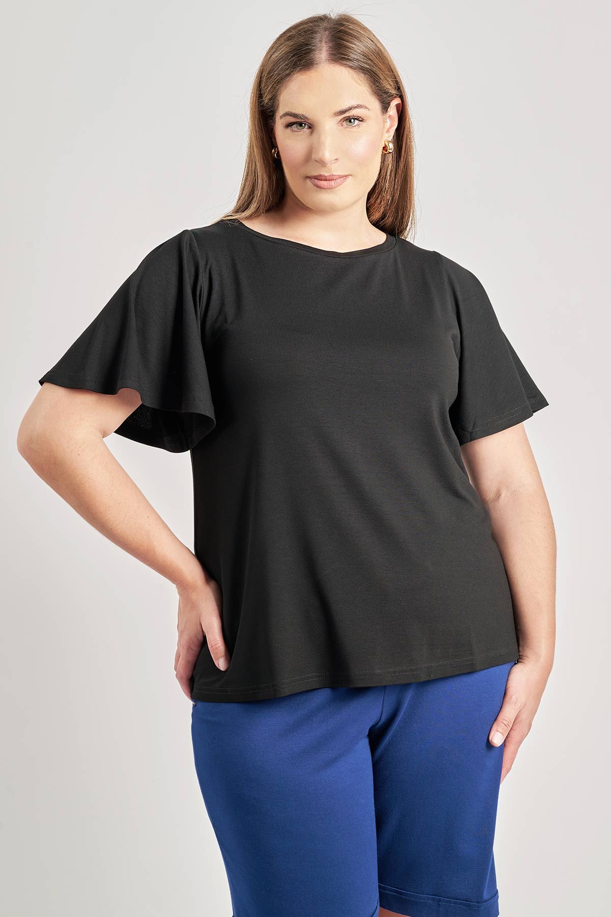 - Μπλούζα από ελαστική βισκόζη. Κοντά μανίκια καμπάνα. Με στρογγυλή λαιμόκοψη. Κάθετη ραφή στην πλάτη. Σε ίσια γραμμή. Το μοντέλο έχει ύψος 180 εκ, στήθος 107, μέση 95, περιφέρεια 122 και φοράει το μέγεθος S