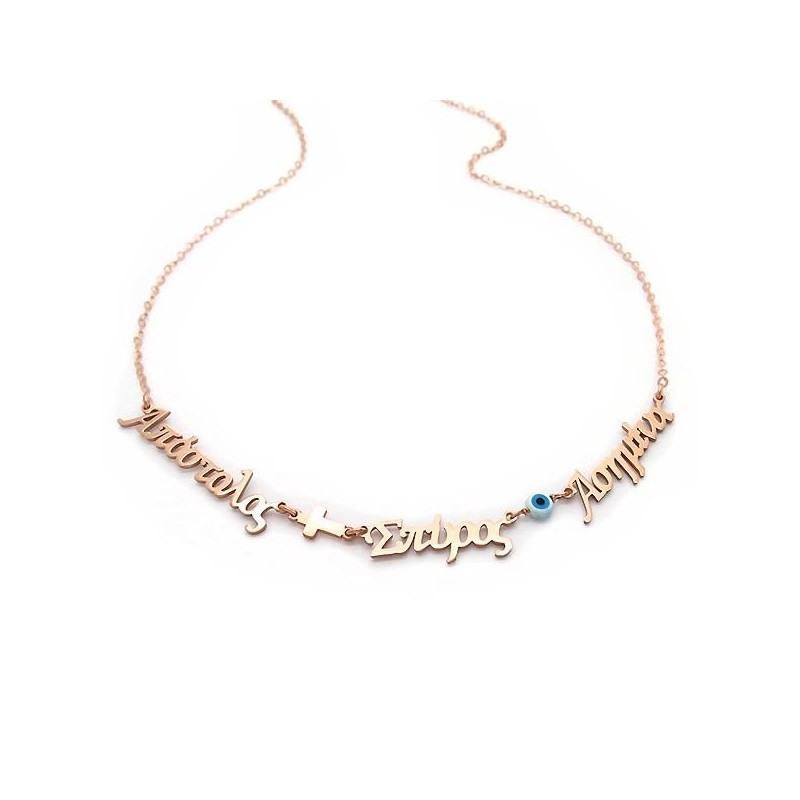 Κολιε με τρία ονόματα ασημένιο ροζ επιχρυσωμένο ON201