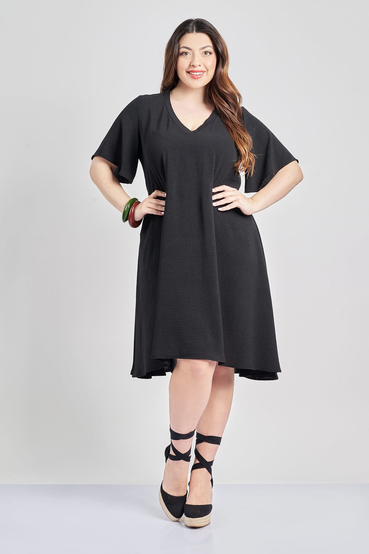 - Μίντι φόρεμα από ανάλαφρο ύφασμα washed με ανάγλυφη υφή. V λαιμόκοψη. Κοντά μανίκια καμπάνα. Ριχτή γραμμή-Α με κλος ασύμμετρο τελείωμα. Ιδανικό για όλη τη μέρα. Το μοντέλο έχει ύψος 172 εκ, στήθος 108, μέση 94, περιφέρεια 111 και φοράει το μέγεθος S
