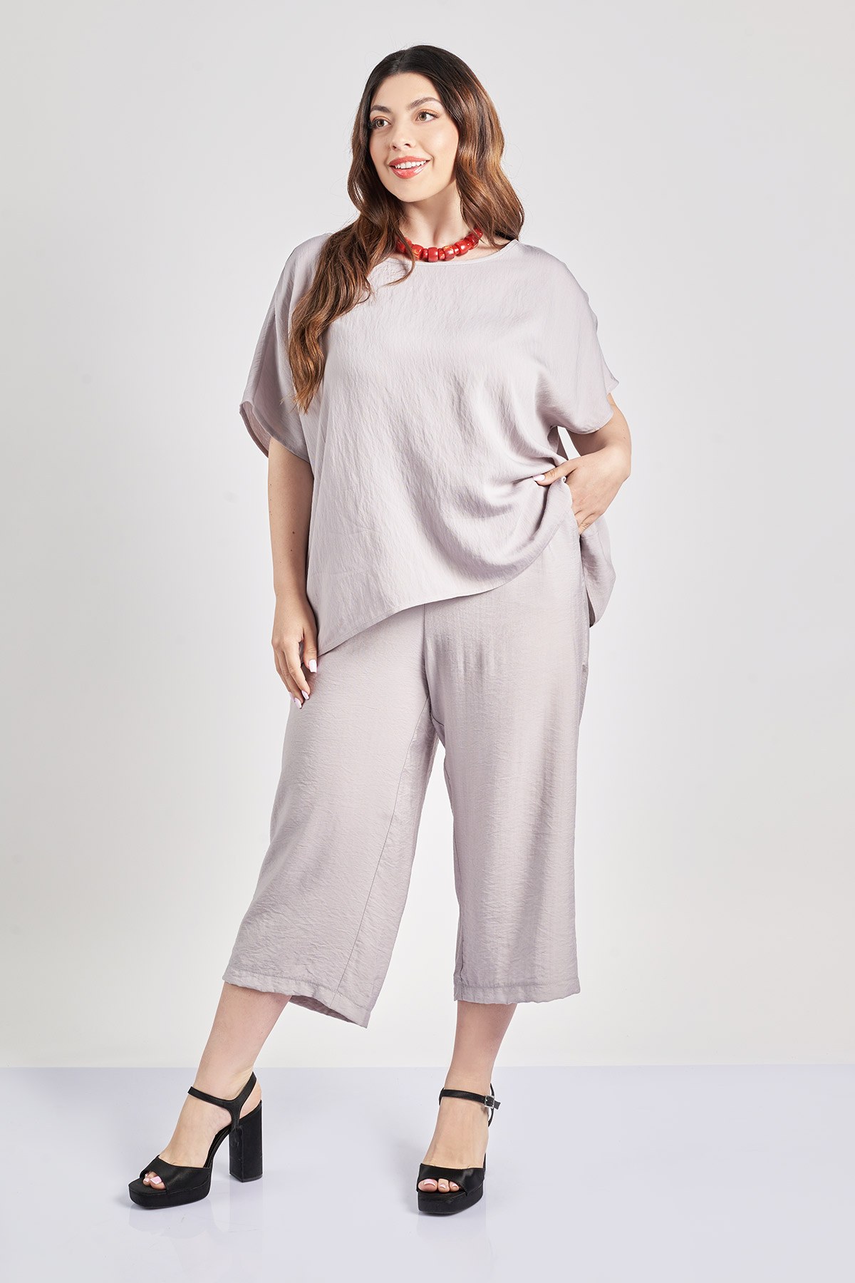 - Cropped παντελόνα από σύμμεικτο ρεγιόν σε όψη λινού. Λάστιχο στη μέση. Πλαϊνές λειτουργικές τσέπες που δε διαγράφουν. Το απόλυτο κομμάτι για δροσερές κι άνετες εμφανίσεις. Συμπληρώστε το σετ με τη μπλούζα με κωδικό 012510105636. Το μοντέλο έχει ύψος 172 εκ, στήθος 108, μέση 94, περιφέρεια 111 και φοράει το μέγεθος S