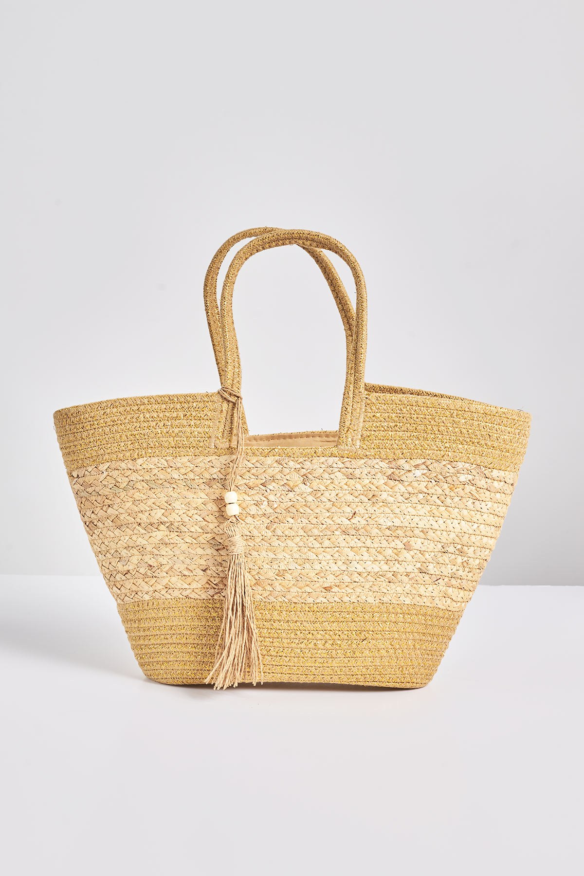 Τσάντα ψάθινη shopper με lurex διχρωμία
