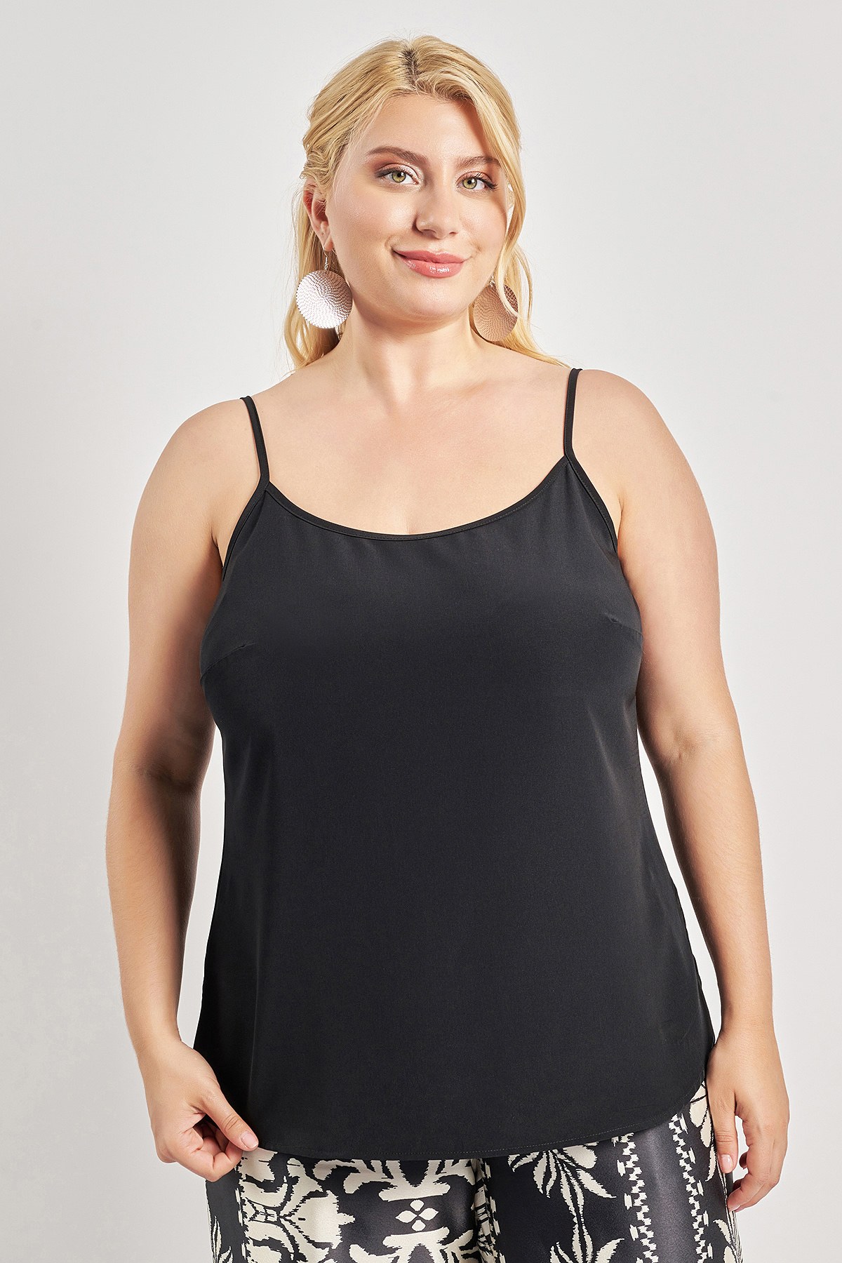 - Αμάνικο τοπ με τιράντες σε κρεπ υφή. Σε ίσια γραμμή με πλαϊνά ανοίγματα. Φοριέται μέσα από διάφανα τοπ ενώ συνδυάζεται άψογα με σακάκι ή ζακέτα. Το μοντέλο έχει ύψος 172 εκ, στήθος 108, μέση 94, περιφέρεια 111 και φοράει το μέγεθος S