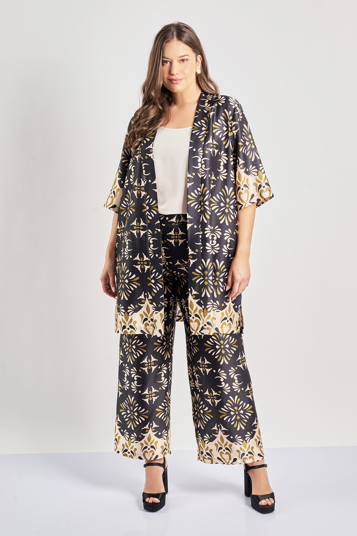 - Μακριά παντελόνα σε σατινέ υφή σε σχέδιο γεωμετρικό μοτίβο. Ελαστική μέση για άνετη εφαρμογή. Ολοκληρώστε το σετ με το κιμονό 012520708476. Το μοντέλο έχει ύψος 180 εκ, στήθος 114, μέση 88, περιφέρεια 121 και φοράει το μέγεθος S