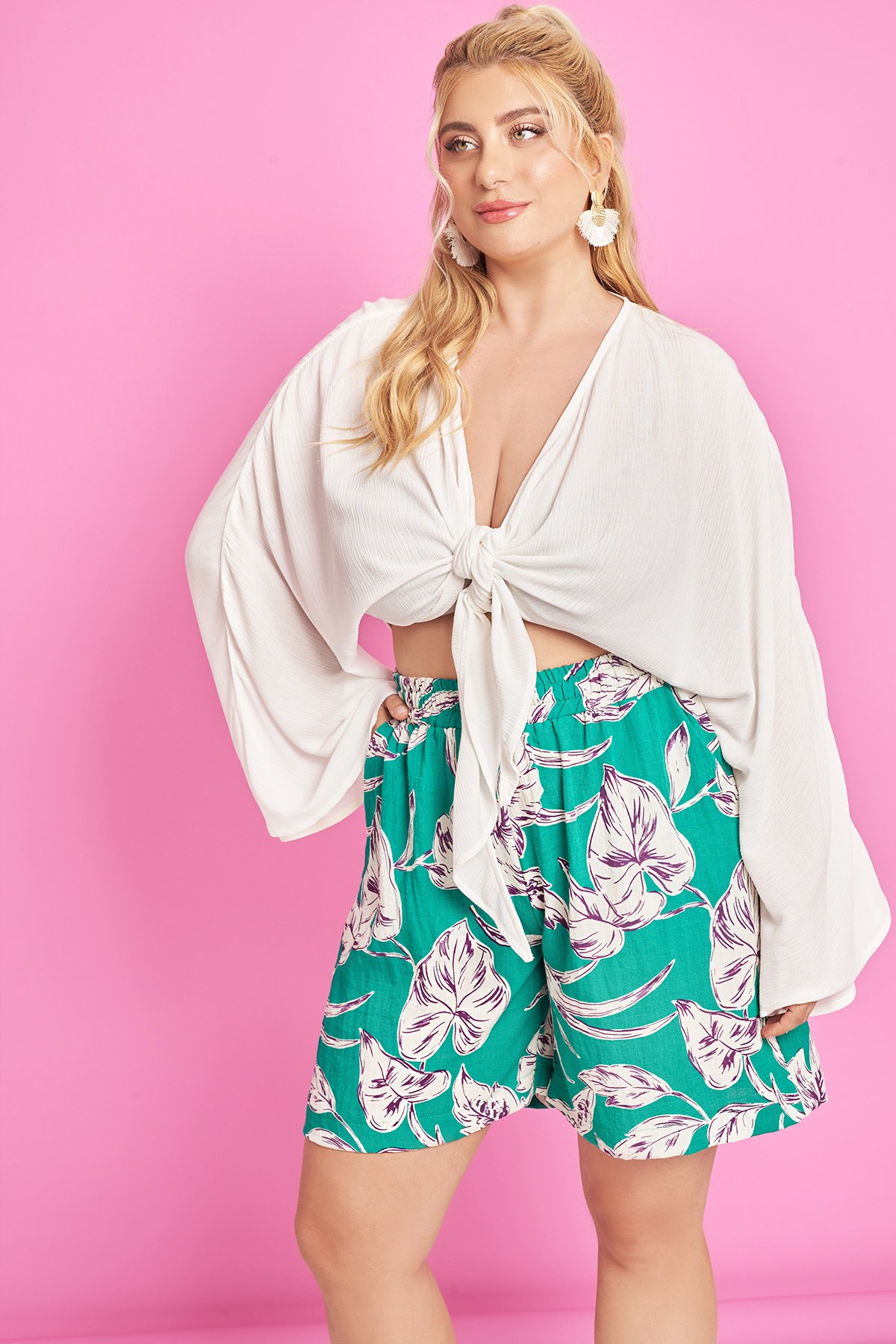 - Μπολερό από ρεγιόν με όψη λινού. Δένει μπροστά και δημιουργεί V ντεκολτέ. Μακριά μανίκια καμπάνα. Το μοντέλο έχει ύψος 177εκ, στήθος 110, μέση 85, περιφέρεια 115 και φοράει μέγεθος S