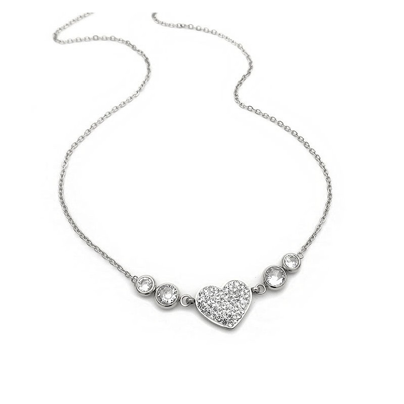 Κολιέ καρδιά με πέτρες από ατσάλι ασημί KL170