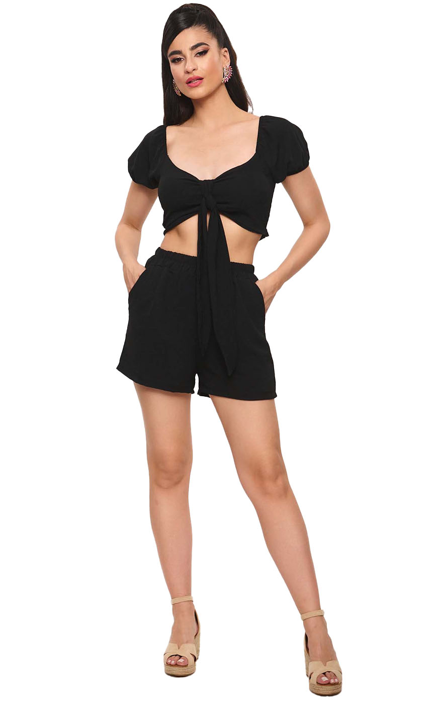 Σετ Crop Top & Σορτσάκι - Μαύρο - LC77321-Μαύρο-One Size