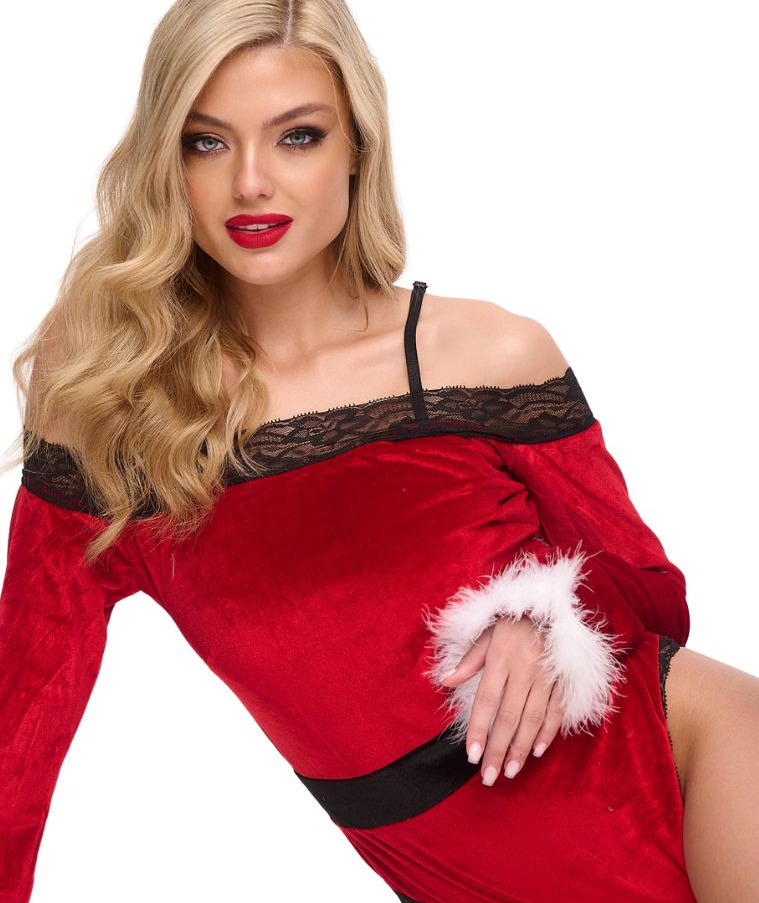 - Βελούδινο κορμάκι. <a href="https://www.lingerie-center.gr/esoroucha/gynaikeia-esoroucha/kormakia-boustozartieres">Κορμάκι</a> σε κόκκινο βελούδο με λεπτομέρειες μαύρης δαντέλας γύρω από την περιοχή του λαιμού και στο τελείωμα από το κιλοτάκι. Λεπτή γούνα καταλήγει στα μανίκια.