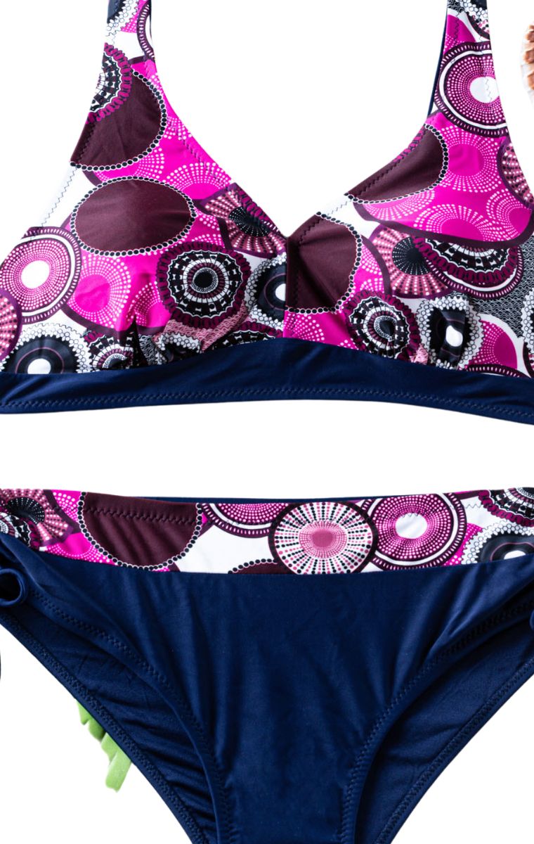 - Μπικίνι ειδικά σχεδιασμένο για μεγάλο στήθος και ψηλόμεσο κιλοτάκι. Το σουτιέν είναι φαρδύ τρίγωνο, χωρίς μπανέλα με λεπτή με αφαιρούμενη επένδυση στο στήθος, οι τιράντες είναι ελαστικές και αυξομειώνονται. Κουμπώνει στην πλάτη με ειδικό κούμπωμα ασφαλείας. Το κιλοτάκι είναι ψηλόμεσο και μπορεί με το ειδικό κορδόνι στο πλάι να το προσαρμόσετε στο σώμα σας.