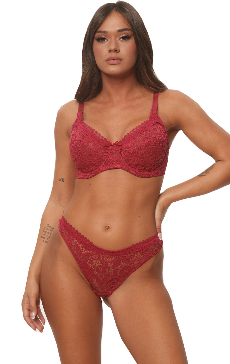 Δαντελένιο Σετ Σουτιέν & String Lezab - Μπορντό - LC6710-Μπορντό-75D/M