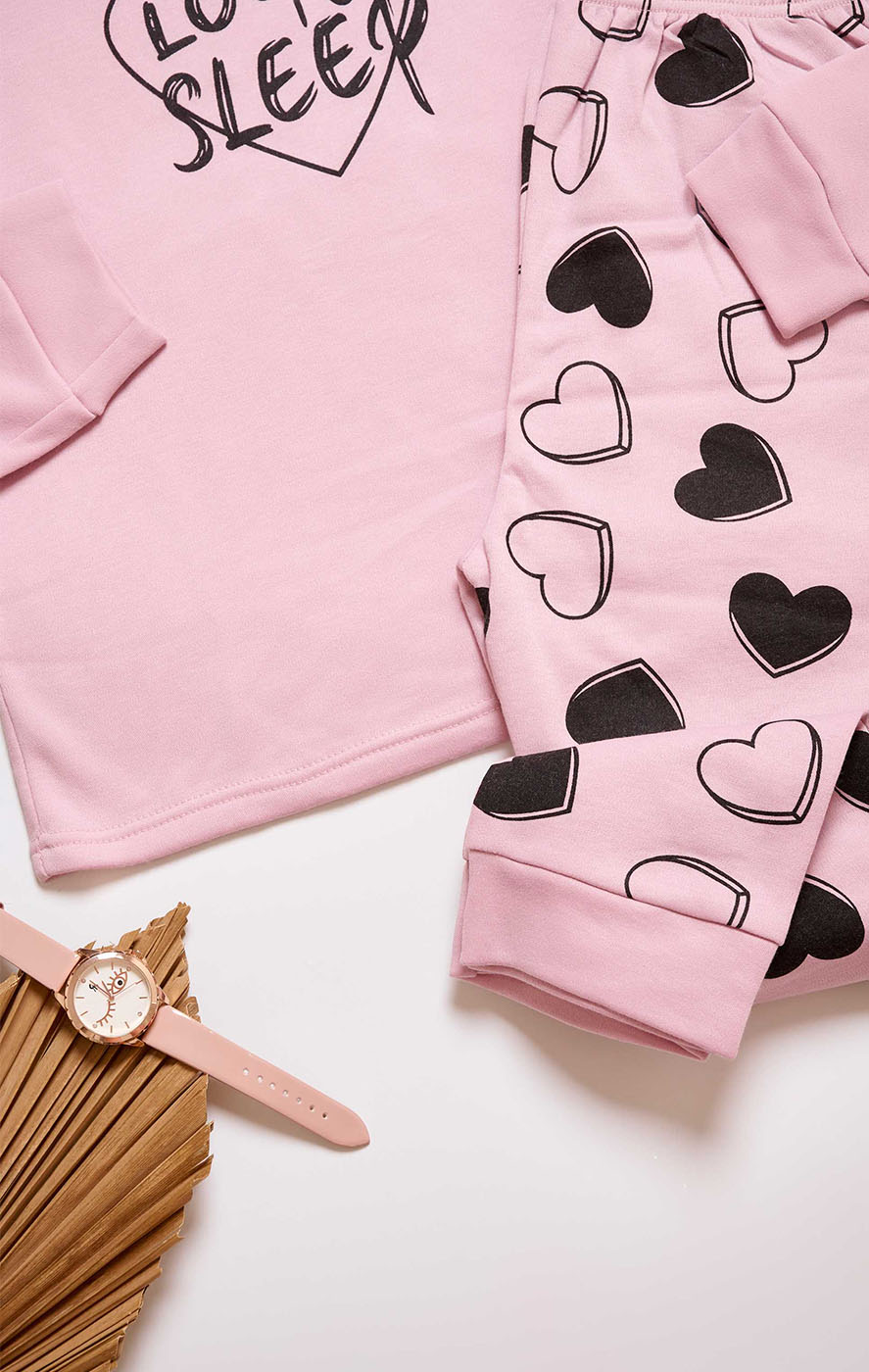 Βαμβακερή Φούτερ Πιτζάμα Love - Ροζ - LC5037-Ροζ-2XL