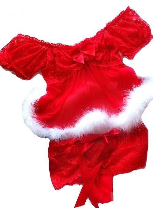 - Δαντελένιο σετ με λευκά πούπουλα. Σέξι κόκκινο babydoll σε ελαστική δαντέλα, με διαφάνεια και τελείωμα γουνάκι μαραμπού. Συνοδεύεται με το ασορτί κόκκινο μπόξερ, το οποίο δένει σε φιόγκο με κόκκινη σατέν κορδέλα.