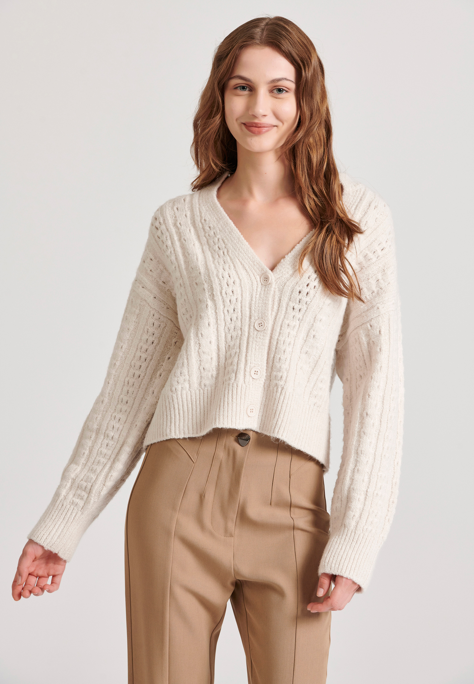 Relaxed fit cropped πλεκτή ζακέτα με σχέδιο στην πλέξη