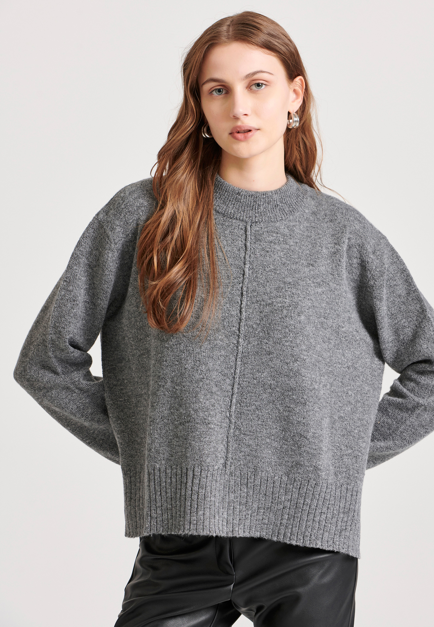 Relaxed fit πλεκτή μπλούζα με στρογγυλή λαιμόκοψη