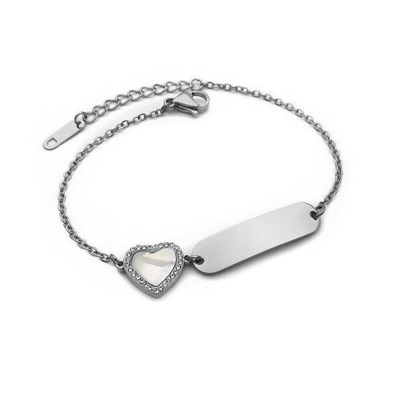 Γυναικείο βραχιόλι για χάραξη με λευκή καρδιά BG235