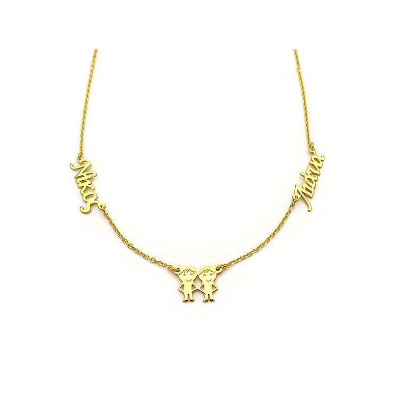 Κολιέ με 2 ονόματα και παιδάκια ασημένιο επίχρυσο ON105