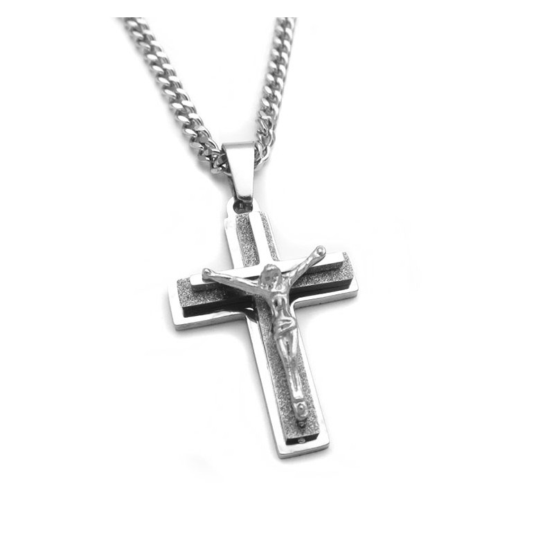 Ανδρικός Σταυρός από Ατσάλι με τον Εσταυρωμένο SA262