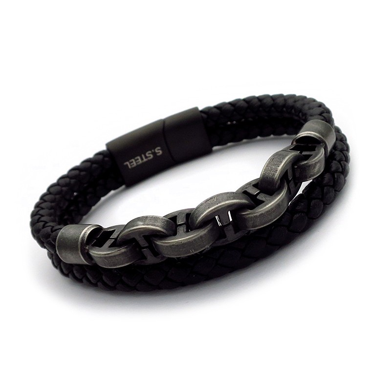 Ανδρικό βραχιόλι με μαύρο δέρμα BA420