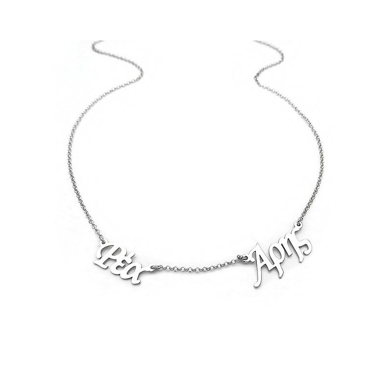 - Κολιέ με δύο ονόματα της επιλογής σας, από Ασήμι 925. Μήκος περίπου 42-44 εκατοστά. Ιδανικό προσωπικό κόσμημα, με τα αγαπημένα σας ονόματα.Σε εμάς θα βρείτε: κολιέ με ονόματα, κολιέ Μαμά, κολιέ mommy, κολιέ με ανδρικά ονόματα, καθώς επίσης και βραχιόλια με ονόματα.Προϊόντα ειδικές παραγγελίες (όπως αυτό) πληρώνονται με πιστωτική κάρτας ή με κατάθεση σε τράπεζα(όχι αντικαταβολή). Δείτε όλα τα ονόματα εδώ >> Κολιέ με διπλά ονόματα
