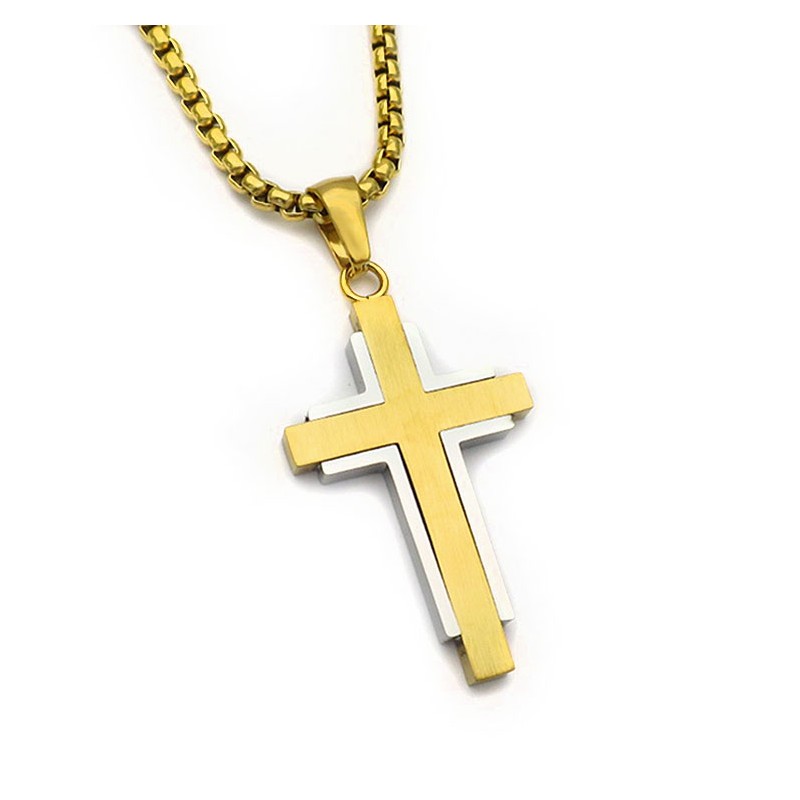 Ανδρικός Σταυρός δίχρωμος από ατσάλι SA268