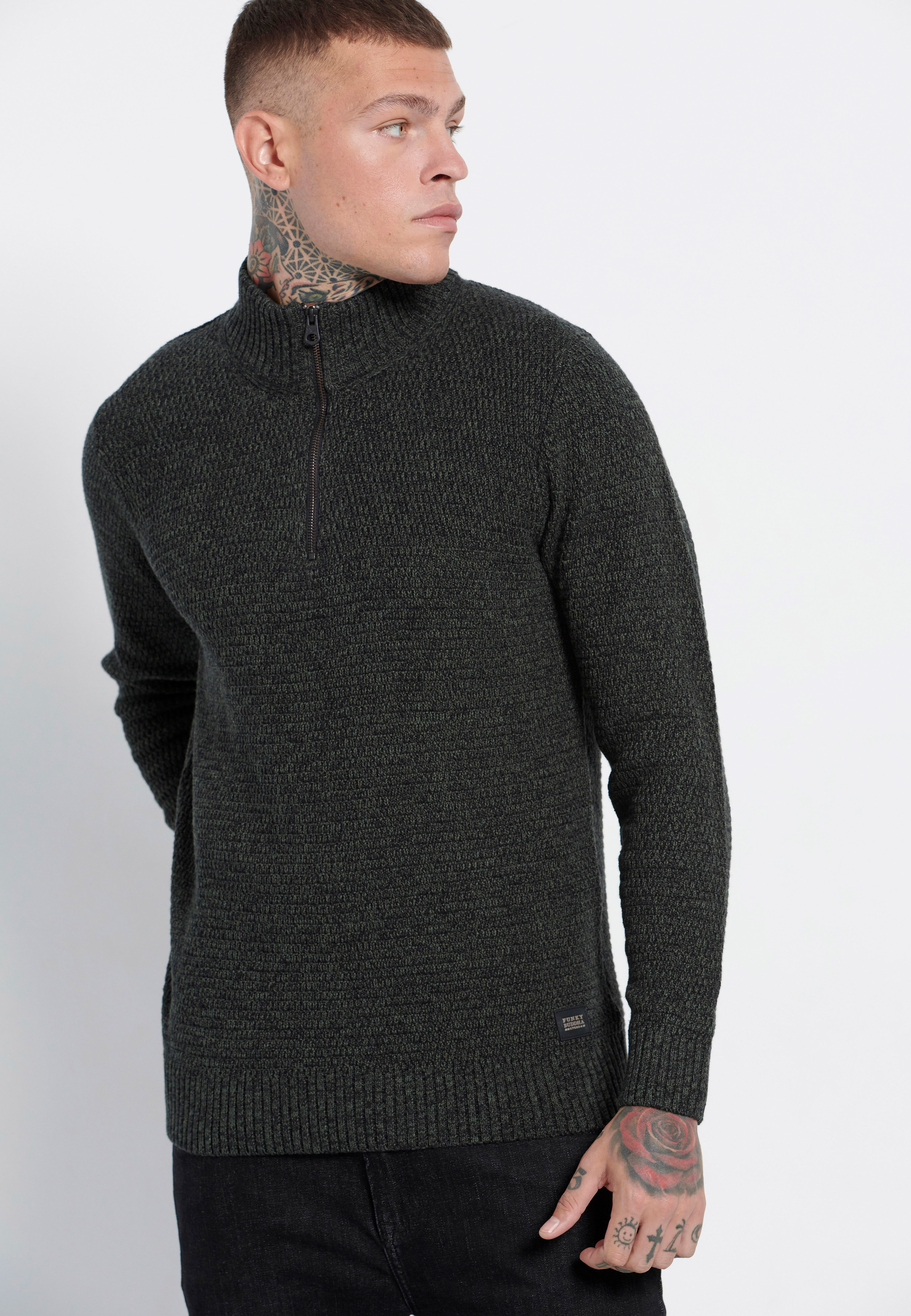 - Λαιμός με μισό φερμουάρ,Jaquard πλέξη,Τελειώματα με πλέξη Rib,Μονόχρωμο,Funky Buddha λογότυπο πάνω από το τελείωμα. 40% ΒΑΜΒΑΚΙ 40% ΠΟΛΥΑΚΡΥΛΙΚΟ 20% ΠΟΛΥΕΣΤΕΡΑΣ