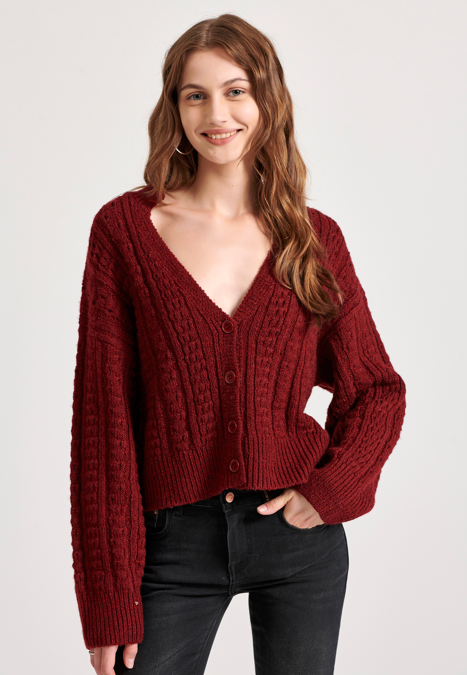 Relaxed fit cropped πλεκτή ζακέτα με σχέδιο στην πλέξη