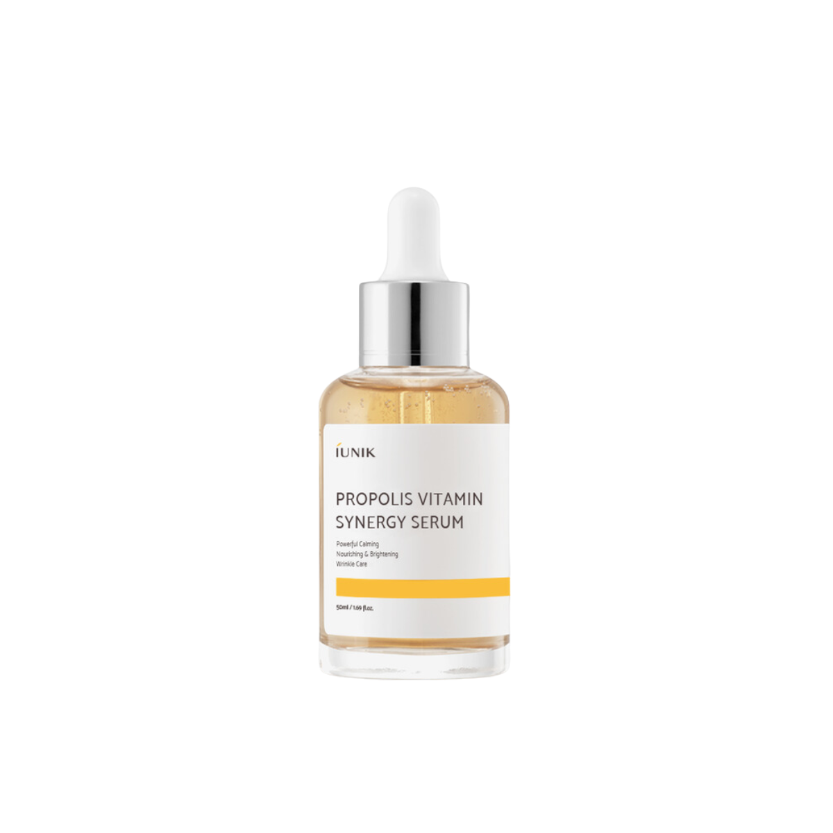 - Ο ορός iUNIK Propolis Vitamin Synergy Serum είναι ένας καταπραϋντικός, θρεπτικός, λαμπερός ορός που αναζωογονεί το ξηρό και ευαίσθητο δέρμα. Εμπλουτισμένος με 70% πρόπολη για να καταπραΰνει το ερεθισμένο δέρμα και 17% εκχύλισμα φρούτων Hippophae Rhamnoides που είναι πλούσιο σε βιταμίνη C για να φωτίζει το δέρμα. Περιέχει ένα συνδυασμό από 7 βοτανικά εκχυλίσματα (Πράσινο τσάι, Centella Asiatica, Γλυκόριζα, Χαμομήλι, Reynoutria japnica, Δεντρολίβανο, Scutellaria baicalensis) που είναι αποτελεσματικός στη μείωση του ερεθισμού του δέρματος και στην μείωση των κηλίδων. Η νιασιναμίδη και η αδενοσίνη καταπολεμούν τις ρυτίδες ενώ αποκαθιστούν τον τόνο του δέρματος. Αυτός ο ορός περιέχει 100% φυσικά συστατικά και είναι τέλειος για θαμπό ή κουρασμένο δέρμα.
