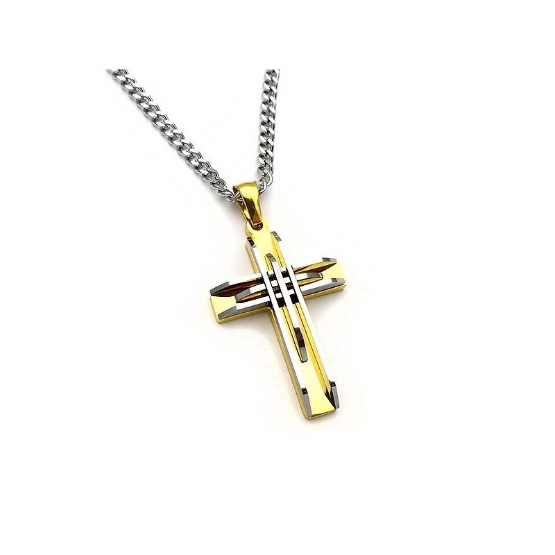 Σταυρός ανδρικός δίχρωμος με αλυσίδα όλο από ατσάλι steel